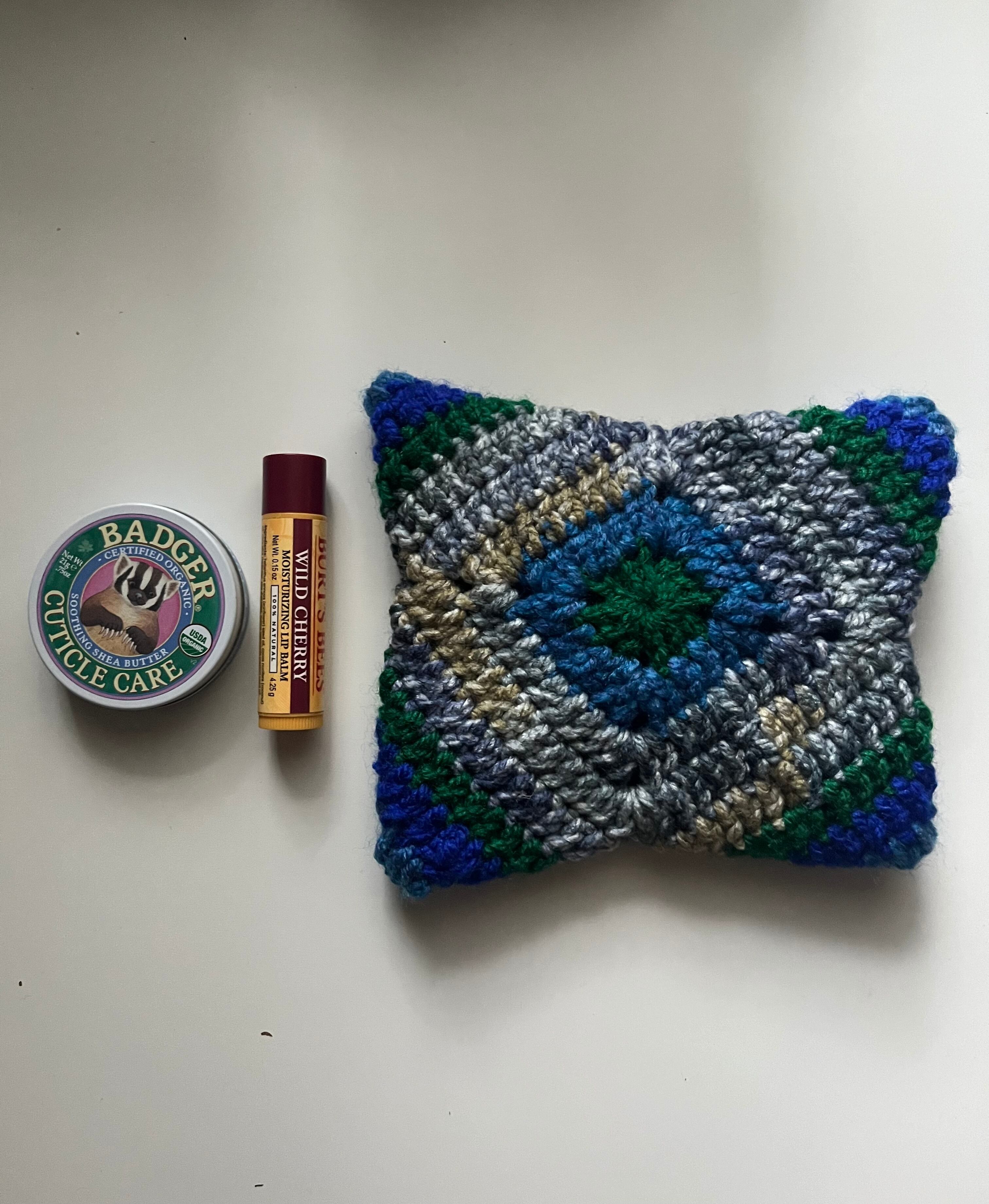 手作りの温かみが感じられる、クロシェットのポーチ。