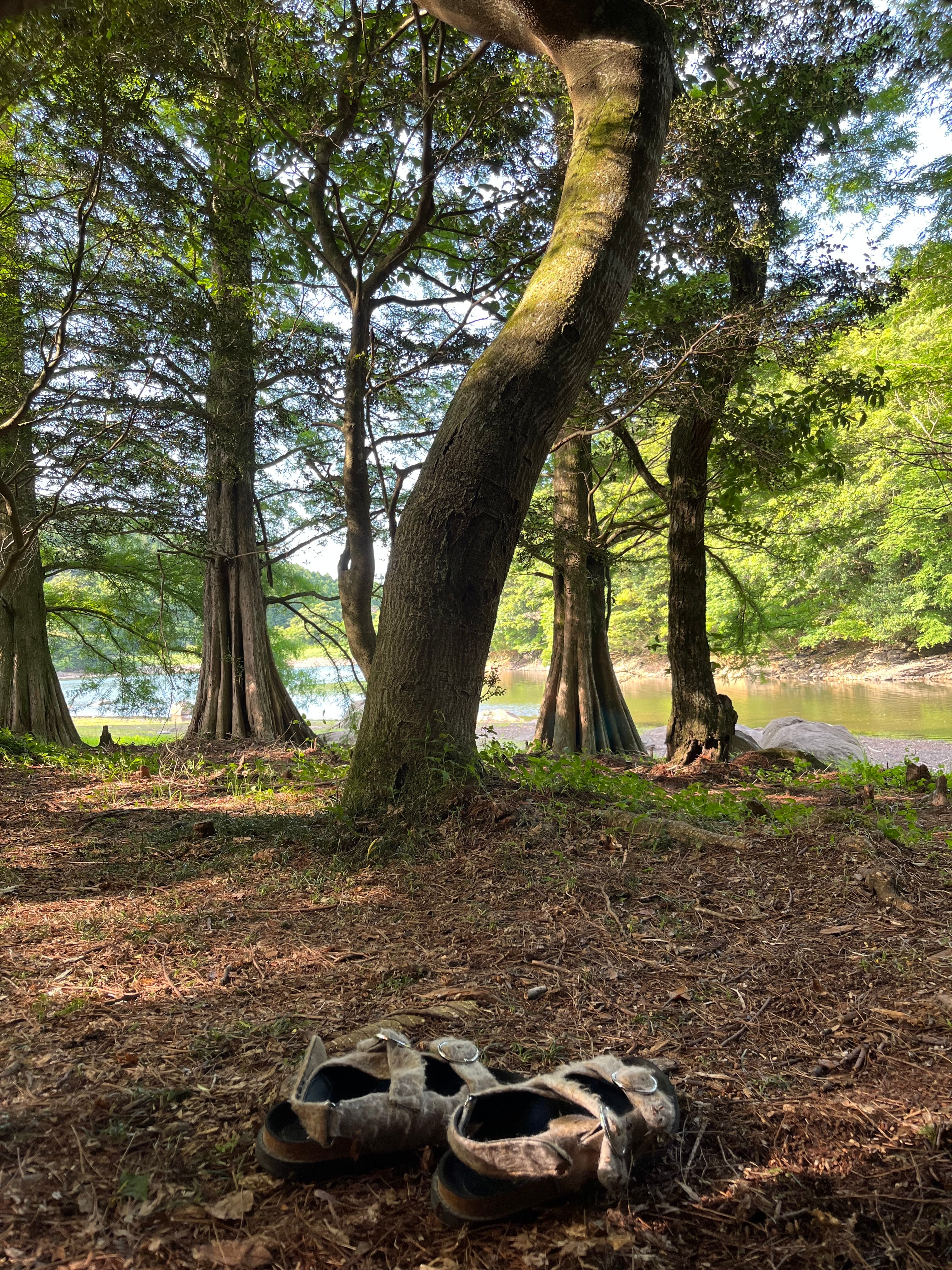 The sensation of a pleasant breeze grazing her cheeks. Seasonal scent that fluffs with the wind. It sharpens the five senses, and just being in nature makes breathing deeper and your eyes and shoulders easier. It's a really great time.